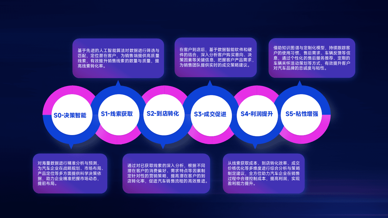 通过拓宽潜在客户来源、、、优化线索分配并提高到店转化率,,,,以增强销售效率。。同时,,,,利用线索数据不断优化分析模型,,,,有效提升转化率,,,扩大营销影响力。。